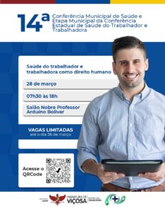 Evento discutirá políticas, novas relações de trabalho e participação popular A 14ª Conferência Municipal de Saúde e Etapa Municipal da Conferência Estadual de Saúde do Trabalhador e Trabalhadora acontecem na