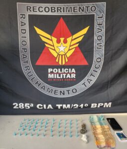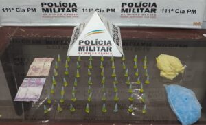 Denúncia anônima leva à prisão de homem por tráfico de drogas em Ubá; polícia apreende 60 eppendorfs de cocaína e dinheiro. Durante patrulhamento, a guarnição policial recebeu uma denúncia anônima