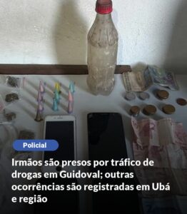 Ações policiais resultaram em prisões, apreensões de entorpecentes e recolhimento de materiais em Ubá, Visconde do Rio Branco, Guidoval e Rodeiro Quatro ocorrências relacionadas ao tráfico de drogas foram registradas