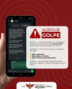 Mensagens falsas usam o nome do Governo Federal; orientação é não clicar, não responder e não fornecer dados pessoais. A Prefeitura emitiu um alerta sobre a circulação de mensagens falsas
