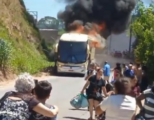 Ônibus da Unida pega fogo no trevo de Rio Pomba