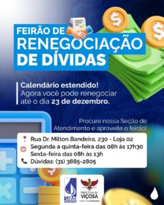 Casa do Empresário e Sindcomércio divulgam cronograma de atendimento para o Natal e o Ano Novo A Casa do Empresário e o Sindcomércio de Viçosa divulgaram o cronograma oficial de
