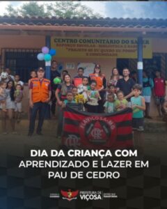 Iniciativa da Defesa Civil, Secretaria de Governo e Embaixada Flavicosa Une Lazer e Conscientização em Viçosa Uma ação do Dia das Crianças foi realizada na comunidade de Pau de Cedro,