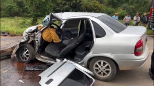 Colisão frontal entre carro e van da prefeitura de Muriaé deixa feridos na BR-356