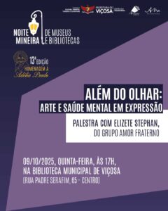 Edição de Outubro da “Noite Mineira de Museus e Bibliotecas” recebe palestrante do grupo Amor Fraterno A Biblioteca Municipal de Viçosa realiza nesta quinta (09), a edição do mês da