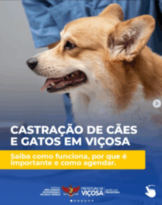 Viçosa oferece castração gratuita de cães e gatos em parceria com a SOVIPA