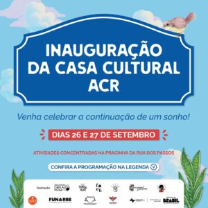Evento de dois dias marca a inauguração da Casa Cultural ACR, com atividades gratuitas e abertas à comunidade. A Associação Carla Rosa (ACR) inaugura sua nova sede, a Casa Cultural