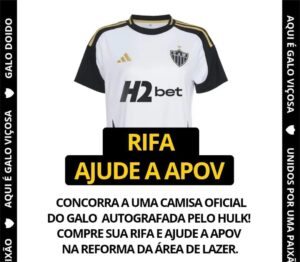 Ação da Torcida Aqui é Galo Viçosa visa arrecadar fundos para a APOV com prêmio de camisa autografada por Hulk. A Torcida Aqui é Galo Viçosa está promovendo uma rifa
