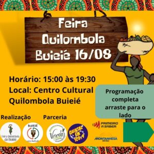 Evento no Centro Cultural Quilombola Buieié terá música e culinária no dia 16 de agosto. O Centro Cultural Quilombola Buieié irá sediar a Feira Quilombola Buieié no dia 16 de