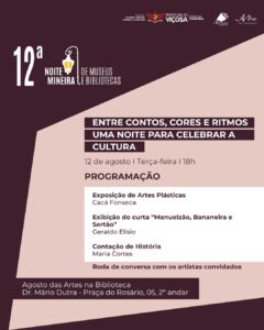 Biblioteca Municipal sedia 12ª edição com exposições, exibição de filme e roda de conversa. A Biblioteca Municipal Dr. Mário Dutra dos Santos, em Viçosa, sediará a 12ª edição da Noite