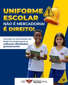 Uniformes escolares distribuídos gratuitamente da rede municipal em Viçosa, não podem ser vendidos