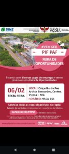 Feira de oportunidades “#VemSerPifPaf” ocorre nesta sexta (06), no centro de Viçosa