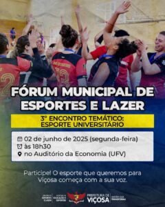 Encontro no auditório da economia da UFV contribuirá para o Plano Municipal de Esportes e Lazer A Diretoria de Esportes e Lazer, ligada à Secretaria Municipal de Educação e Esportes