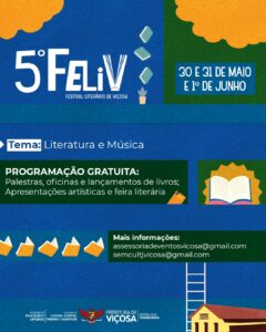 O evento “Literatura e Música” acontecerá de 30 de maio a 1º de junho, com diversas atividades culturais e programação gratuita para a comunidade. Viçosa se prepara para sediar o