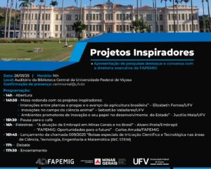 Iniciativa Projetos Inspiradores homenageará pesquisas inovadoras e promoverá diálogo entre a fundação e a comunidade acadêmica no campus Viçosa. A Fundação de Amparo à Pesquisa do Estado de Minas Gerais