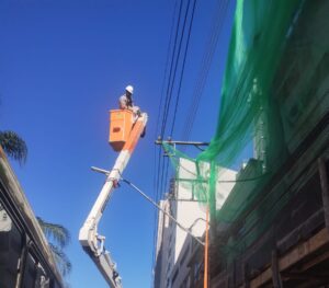 Queda de tela em fiação congestiona transito e provoca queda de energia, em Viçosa