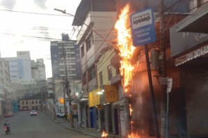 Fiação de poste na Mario Del Giudice pega fogo e gera transtornos, em Viçosa