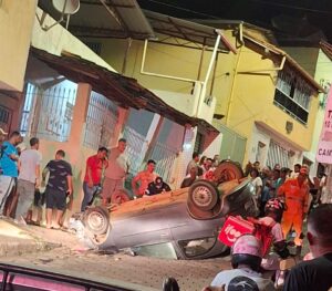 Vitima de capotamento é socorrida na rua Nossa Sra Aparecida, em Viçosa