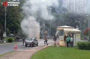 Na tarde desta quinta-feira, dia 14/03, um carro pegou fogo na UFV, em Viçosa. As pessoas que passavam próximo as 4 pilastras, se depararam com o carro, um Fiat Uno