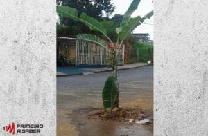 Na manhã de hoje, diversas pessoas divulgaram fotos de buracos sendo tapados com bananeiras em ruas dos bairros Nova Era e Vau Açu. Nas imagens, os usuários comentavam que as