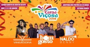 O pré carnaval da cidade de Viçosa começa na próxima semana e terá entrada gratuita. A festa acontece no Espaço Aberto de Eventos da Universidade Federal de Viçosa e é