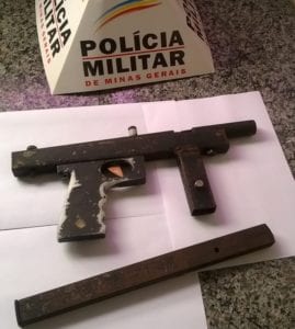 Na manhã desta terça-feira (24), a Polícia Militar apreendeu uma submetralhadora de fabricação caseira em posse de dois homens no bairro Estrelas em Viçosa, sendo um deles foragido do Presídio de Viçosa, onde cumpria pena por tráfico de drogas.