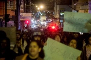 Diversas pessoas se reuniram por volta das 17h desta quinta-feira (18) na Praça das 4 Pilastras na entrada da Universidade Federal de Viçosa e de lá saíram pelas principais ruas do Centro da cidade.