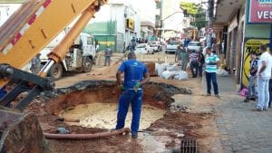 Para que o problema seja totalmente resolvido serão necessários 15 dias e nesse período o trânsito será desviado e os moradores do Centro da cidade ficarão sem água entre às 07hs da manhã até às 18hs.