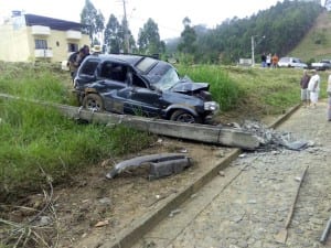 Durante o feriado prolongado de Corpus Cristi o condutor de um carro provocou um acidente na BR 120 na entrada da cidade de Coimbra batendo em um poste de energia
