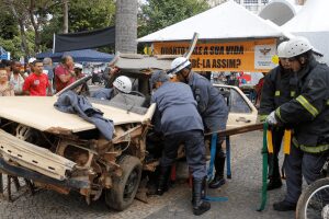 Neste sábado 14, o Corpo de Bombeiros de Viçosa realizou uma simulação de resgate de vítima que se envolveu em acidente de trânsito. Dezenas de pessoas acompanharam a simulação, que