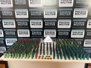 A Polícia Militar prendeu um homem no bairro Morro Bela Vista, em Fervedouro, na Zona da Mata, com mais de 300 frascos de pólvora, drogas, cartuchos e um revólver. A