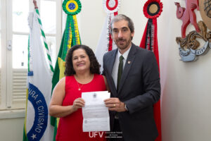 Em uma cerimônia com colegas de trabalho e familiares, a professora de sociologia Alessandra Gomes Mendes Tostes tomou posse como diretora do CAp-Coluni para um mandato de dois anos. Esta foi a