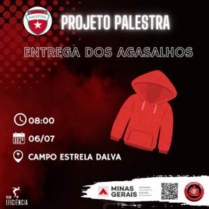 O Projeto Palestra está divulgando um convite em suas redes sociais para a realização de uma entrega de agasalhos no próximo sábado (6). O evento acontece no campo do Carecão