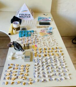 PM apreende arma de fogo e grande quantidade de drogas, em Ervália