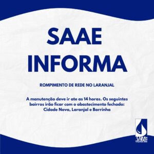 Houve na manhã desta sexta-feira (26), um rompimento de rede no Bairro Laranjal. A equipe do SAAE se prontificou e já está em ação para solucionar o problema o quanto