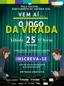Espetáculo “O Jogo da Virada” aborda impactos das apostas e jogos de azar na vida pessoal e familiar No sábado, 25 de outubro, às 17h, o auditório Fernando Sabino, no