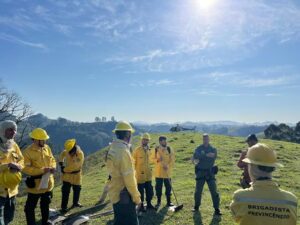 Corpo de Bombeiros, brigadistas e voluntários atuam no combate ao fogo na região Um incêndio de grandes proporções atinge o Parque Estadual Serra do Brigadeiro, na região de Miradouro (MG),