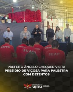 Ação teve como foco o diálogo sobre reintegração social e contou com presença de autoridades municipais e equipe de saúde O prefeito de Viçosa, Ângelo Chequer, esteve no Presídio de