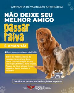 Ação será realizada em diversos pontos da cidade para cães e gatos a partir de três meses A Prefeitura de Viçosa promove neste sábado, 23 de agosto, a campanha de