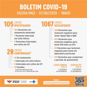 O setor de epidemiologia confirmou neste sábado. dia 06, o 28º caso de coronavírus em Viçosa. Trata-se de um homem de 43 anos. O paciente fez o teste em laboratório