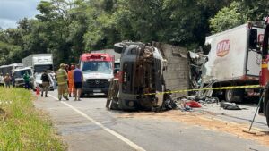 Dois caminhões colidem frontalmente na estrada Viçosa x Ponte Nova