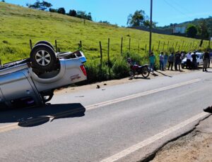 Acidente ocorreu na Colônia Vaz de Melo em Viçosa, e envolveu capotamento de veículo e duas vítimas ficaram feridas Um acidente entre um carro e uma motocicleta foi registrado na