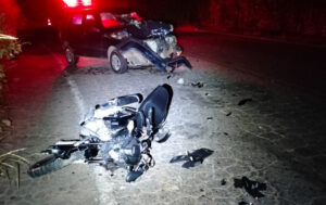 Acidente foi causado após um carro colidir frontalmente com uma motocicleta que estava na contramão em avenida em Ponte Nova Na madrugada de domingo (16), um acidente envolvendo um automóvel