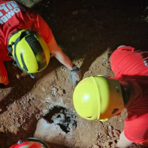 Na noite da última quarta-feira (17), uma cadelinha e três filhotes ficaram soterrados e presos em um cano, entre os municípios de Ponte Nova e Viçosa, precisando ser resgatados pelo