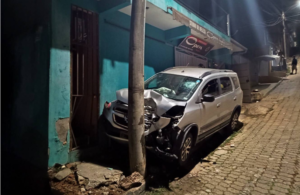 Motorista embriagado perde controle, atinge poste e causa danos