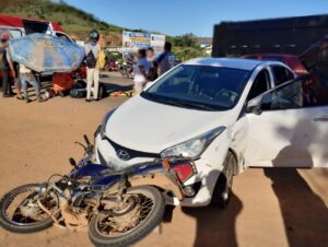 Acidente aconteceu na tarde da última sexta-feira, 18/11; no momento da colisão, automóvel realizava conversão Um acidente envolvendo uma moto e um carro aconteceu na tarde da última sexta-feira, 18/11,