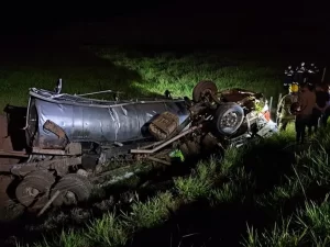 Homem foi jogado para fora do veículo e ficou preso embaixo do tanque, que levava soro de leite. Um motorista morreu na tarde de sexta-feira, 23/12, após a carreta que ele