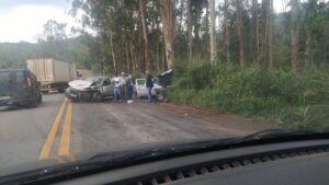 Após conversão perigosa, carros batem de frente na rodovia de Coimbra