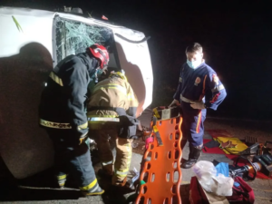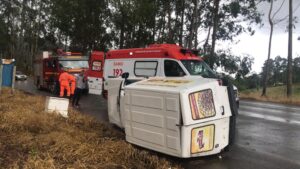 Homem estava sozinho no veículo na hora do capotamento. Acidente foi registrado na noite de domingo, 11/12. Uma van capotou na noite de domingo, 11/12, na BR-267, próximo à entrada