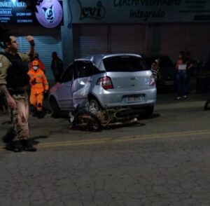 Uma motocicleta colidiu com um Chevrolet Agile prata por volta das 19h da noite deste sábado (18), na Avenida Marechal Castelo Branco. Imagens do local mostram a moto destroçada e